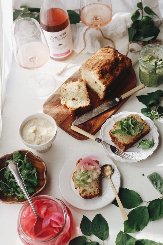 Bizcocho salado de parmesano y hierbas con crema de espárrago blanco